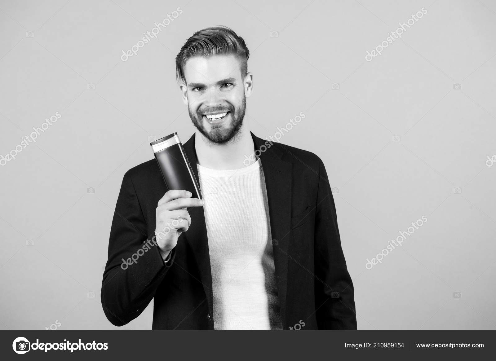 Biznesmen Ulybka S Shampun Ili Gel Flakon V Ruke Spa Chelovek S