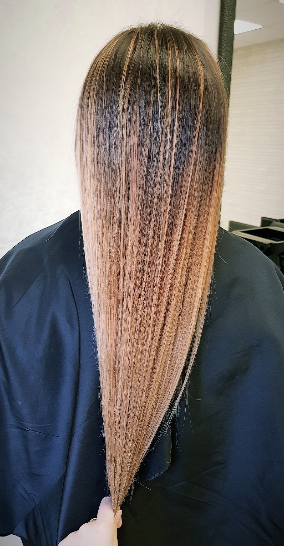 Kolorirovanie dlya blondinok bryunetok i shatenok. No osvetlenie pryadey vypolnyaetsya so srediny dliny volos stanovyas bolee nasyshchennym k konchikam. Kak proizvoditsya pokraska dlinnykh volos i pryadey sredney.
