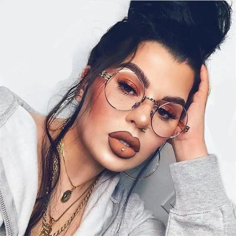 Zhenskie Kruglye Ochki Zolotye Metallicheskie Ochki Prozrachnye