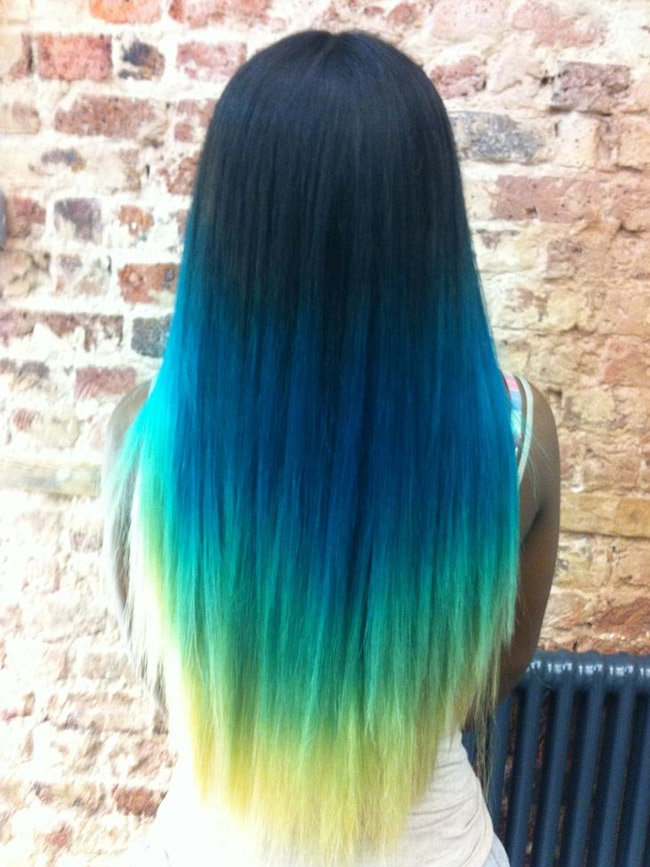 Cvetnoj Balayazh Zelenogo Sinego I Zheltogo Cveta Kartochka