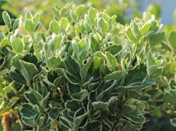 Quick Overview An attractive evergreen with bright bright white edged leaves on a tight bushy upright plant. Varigatedgreen a cream. The record derives from WCSP in review data supplied on 2012-03-23 which reports it as an accepted name with original publication details.